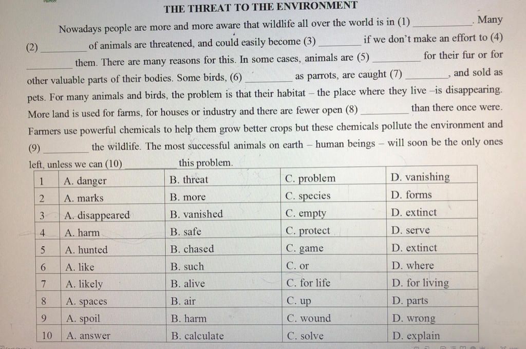 Nowadays people are more and more aware that wildlife all over the world is in (1)