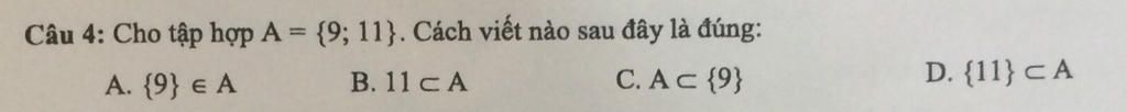Vì câu D tập hợp 9 thuộc tập hợp con của tập hợp A