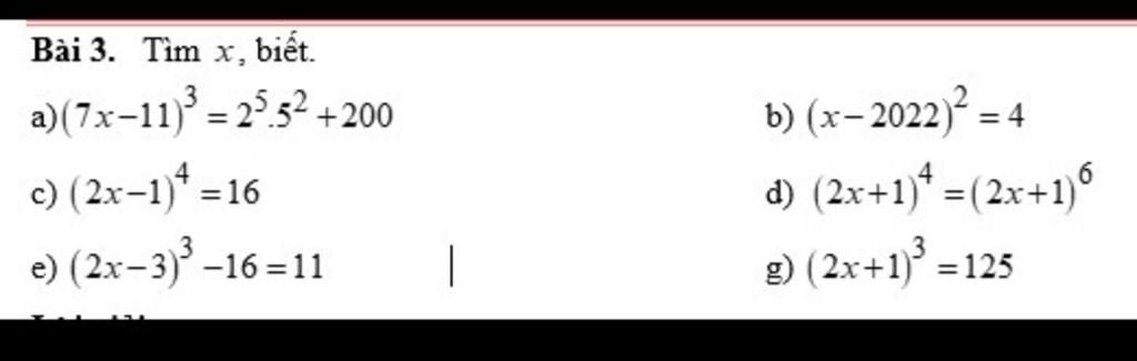 `a) (7x-11)^3 = 2^5 . 5^2 + 200`
