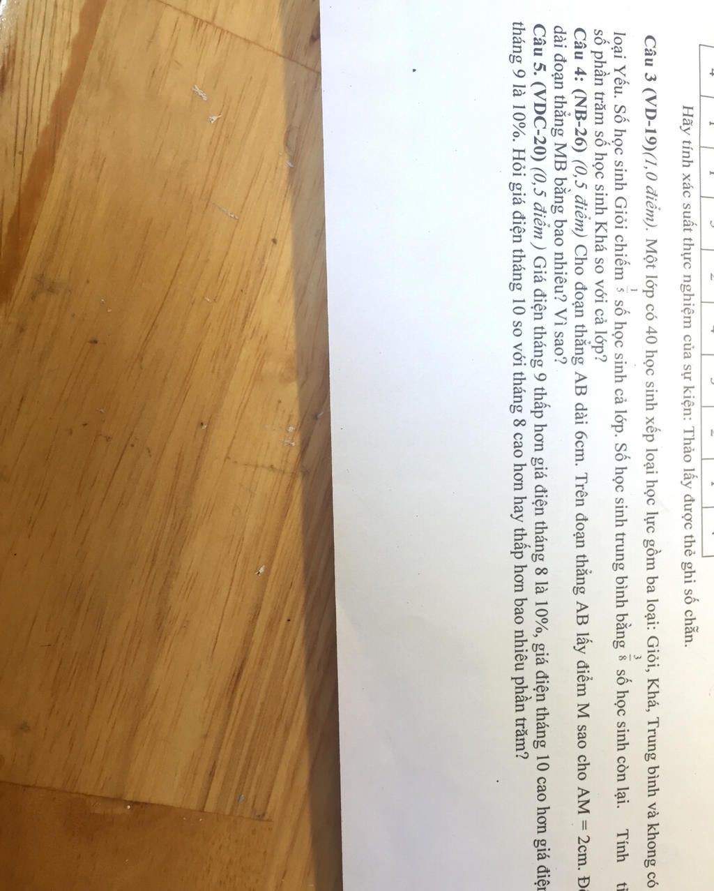 Câu 3 (VD-19)(1,0 điểm). Một lớp có 40 học sinh xếp loại học lực gồm ba loại: Giỏi, Khá, Trung bình và không có