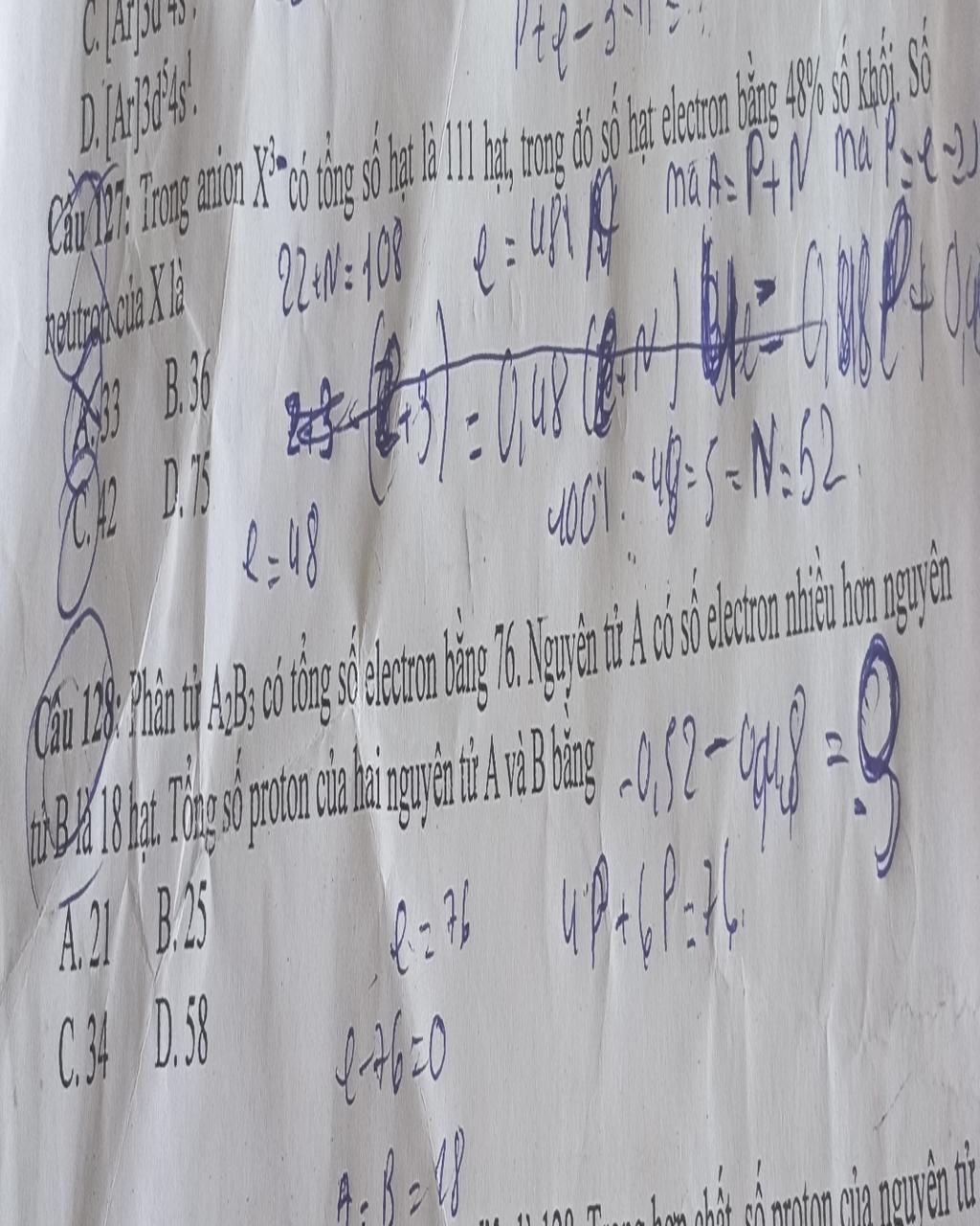 Nguyên tử `A` có số `e` nhiều hơn nguyên tử `B` là `18` hạt :