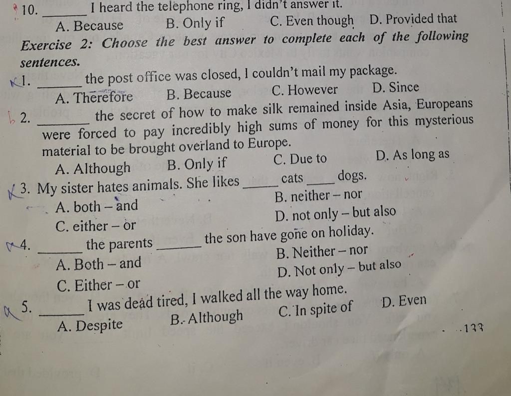 Bài tập TỪ NỐI MỆNH ĐỀ, TỪ NỐI CÂU
