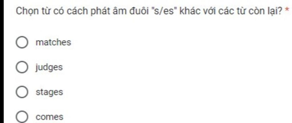 matches tận cùng là ch phát âm là /iz/