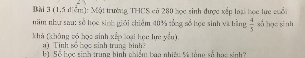 `b)` Số học sinh trung bình chiếm số phần trăm tổng số học sinh là `:`