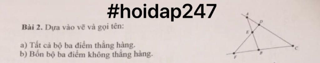 `a)` Tất cả bộ ba điểm thẳng hàng là: