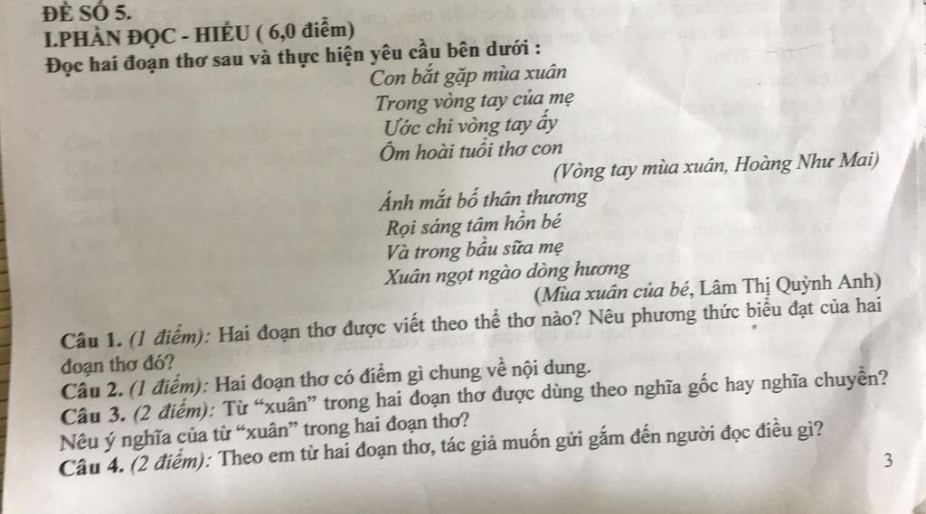 Câu 3: Từ xuân trong hai đoạn thơ được dùng theo nghĩa chuyển.