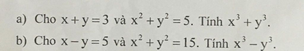 $\text{+) Thay x-y=5;$x^2+y^2=15$ vào biểu thức ta được:}$