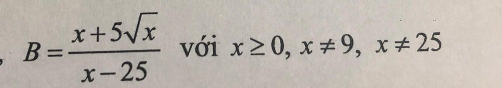`B = (x + 5\sqrt{x})/(x - 25) (x \ne 25 ; x \ge 0)`
