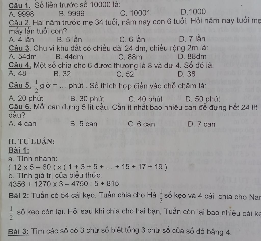 Sau khi chia cho hai bạn, Tuấn còn lại số kẹo là :