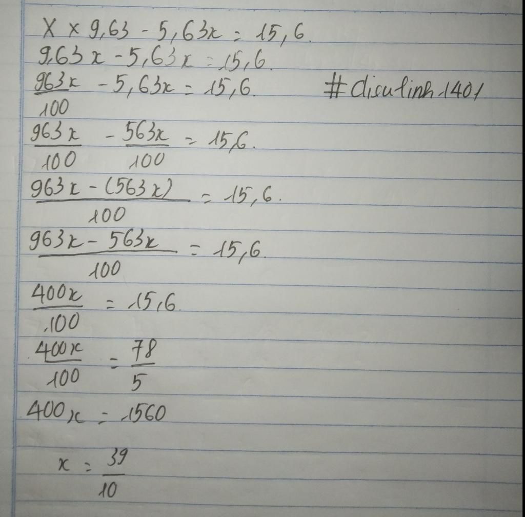 `x xx 9,63 - 5,63 xx x = 15,6`
