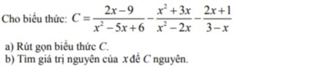 C = \dfrac{{2x - 9}}{{{x^2} - 5x + 6}} - \dfrac{{{x^2} + 3x}}{{{x^2} - 2x}} - \dfrac{{2x + 1}}{{3 - x}}\\