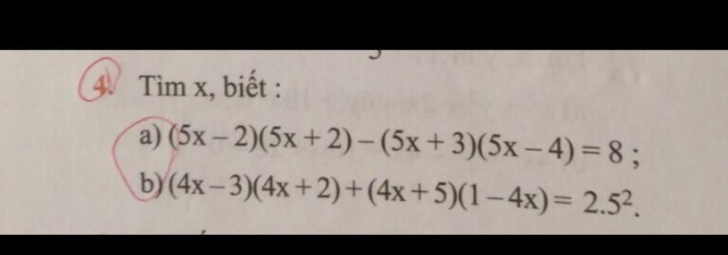 `a) (5x - 2)(5x + 2) - (5x + 3)(5x- 4) = 8`