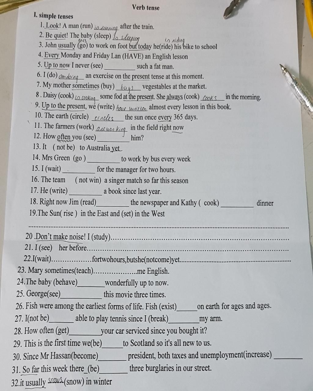 3. John usually (go) to work on foot but today he(ride) his bike to school