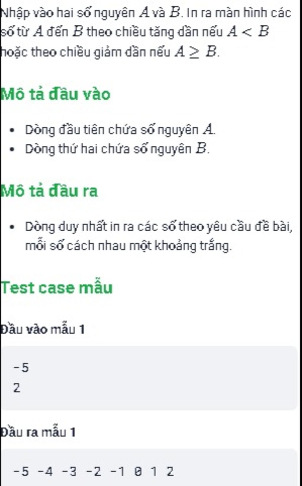 Trong Python, không có vòng lặp ngược nha bạn trên, nên ta sẽ dùng While thay thế nha tus, không tin bài mình bạn nhập 6-3 và bài bạn kia cũng vậy, nhé !