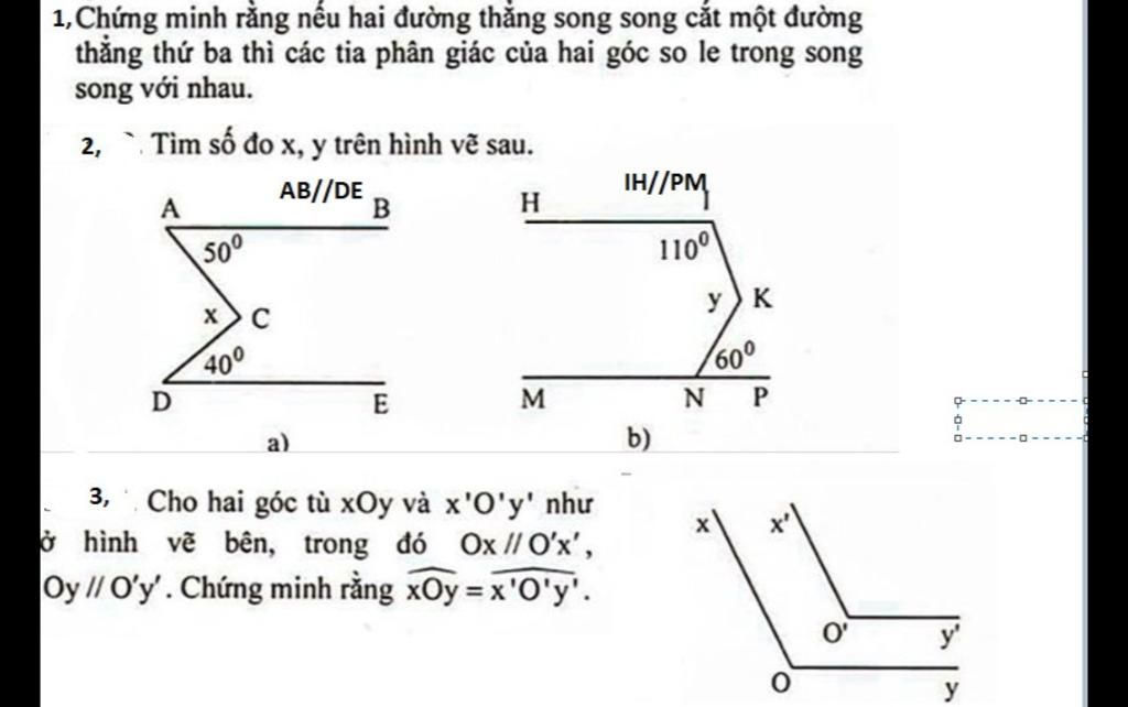 1, Chứng minh rằng nếu hai đường thẳng song song cắt một đường