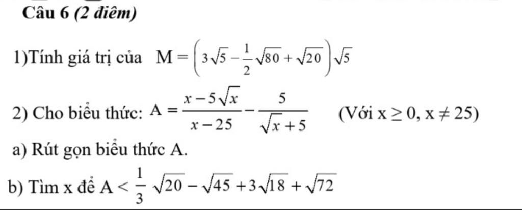 `<=>(sqrt{x}-5)/(sqrt{x}+5)<2/3sqrt{5}-3sqrt{5}+9sqrt{2}+6sqrt{2}`