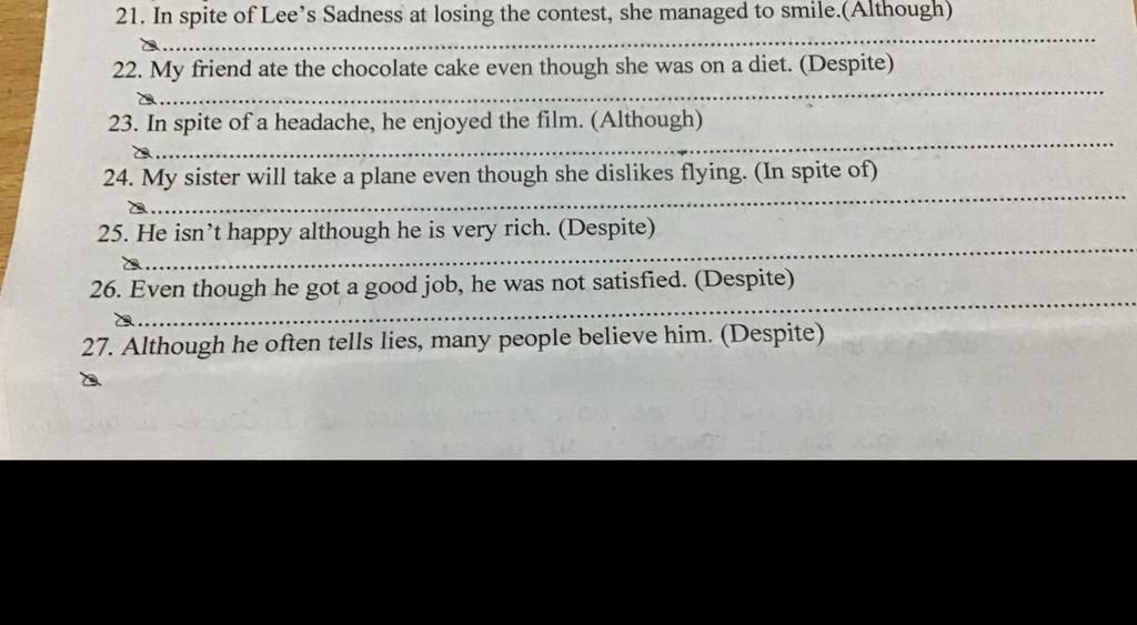 `22.` Despite being on a diet, my friend ate the chocolate cake.