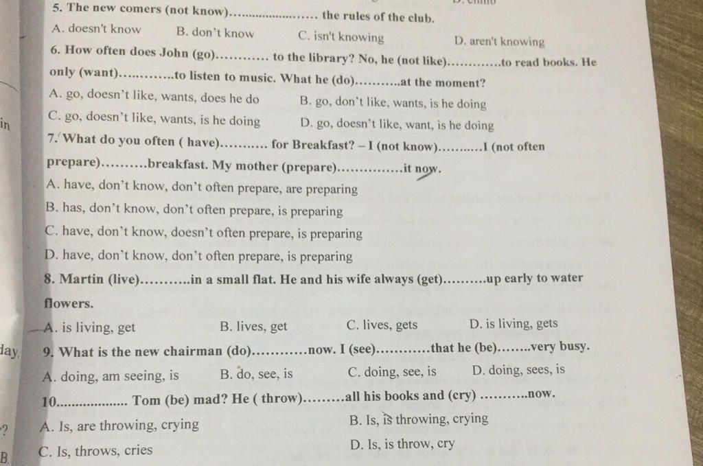 6. How often does John (go)............ to the library? No, he (not like).............to read books. He