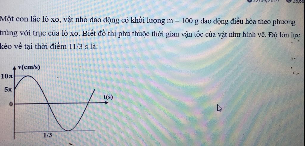 trùng với trục của lò xo. Biết đồ thị phụ thuộc thời gian vận tốc của vật như hình vẽ. Độ lớn lực
