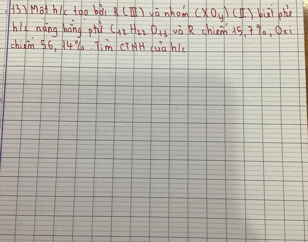 Phân tử khối của R: $R = \dfrac{342.15,7\%}{2} = 27 (đvC)$