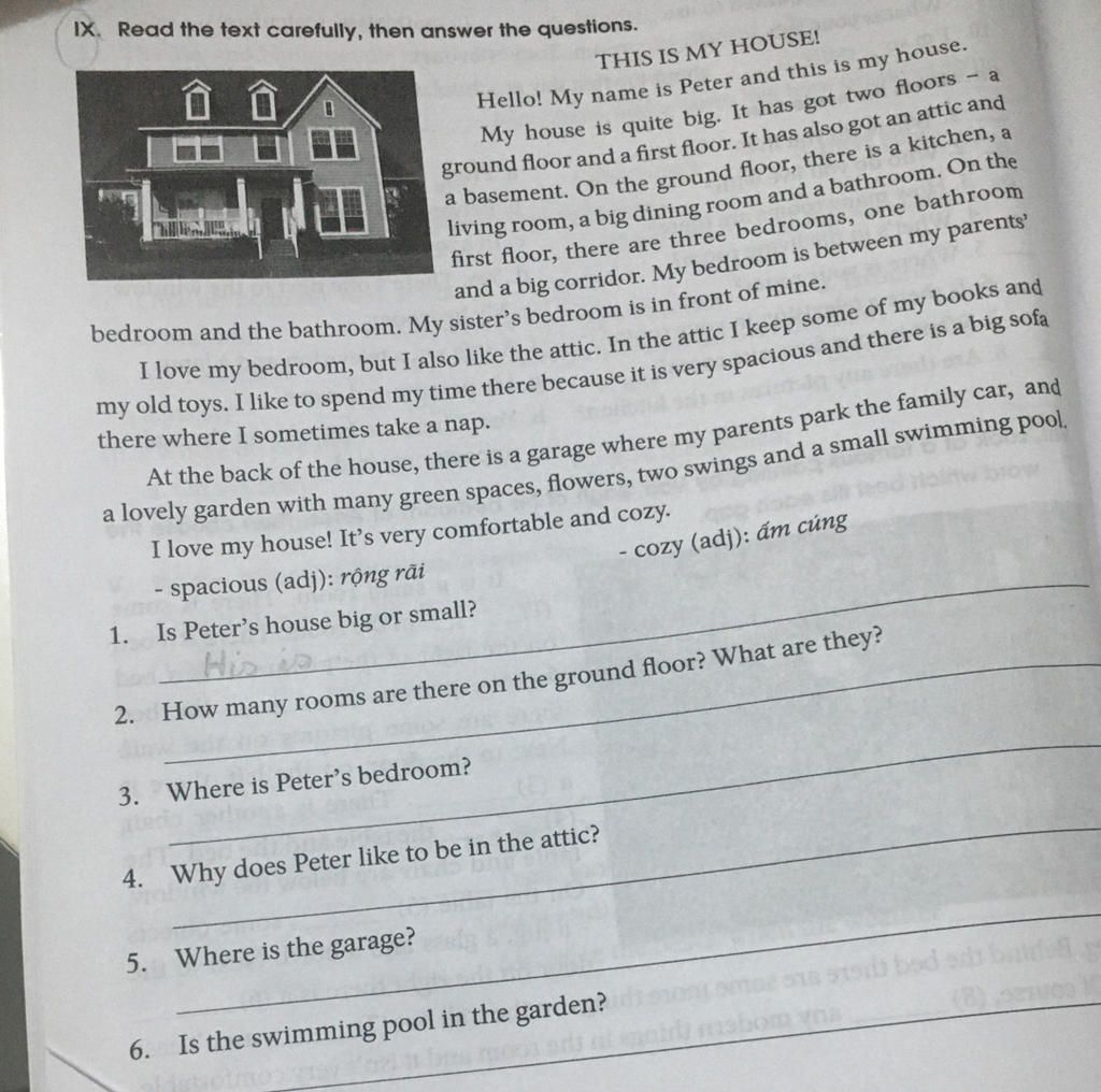 1. It is big ( Giải thích : Setence 2: My house is quite big: Nhà của tôi khá lớn)