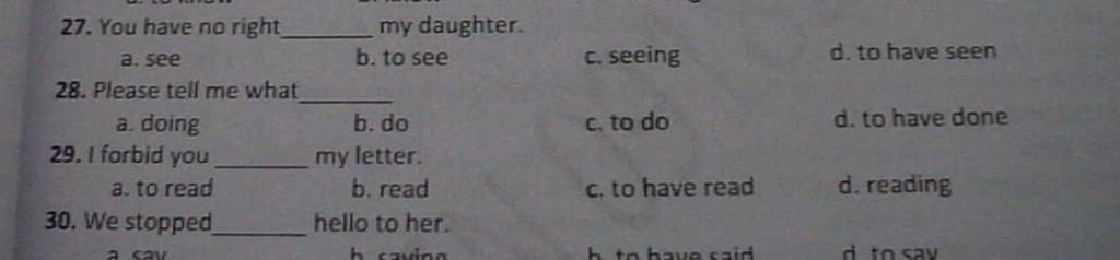27. have no right + to V: hành động của ai là không công bằng, vô lí.