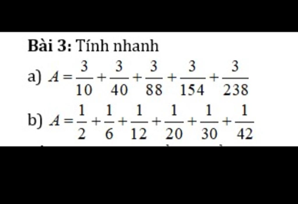 `a) A= 3/10 + 3/40 + 3/88 + 3/154 + 3/238`