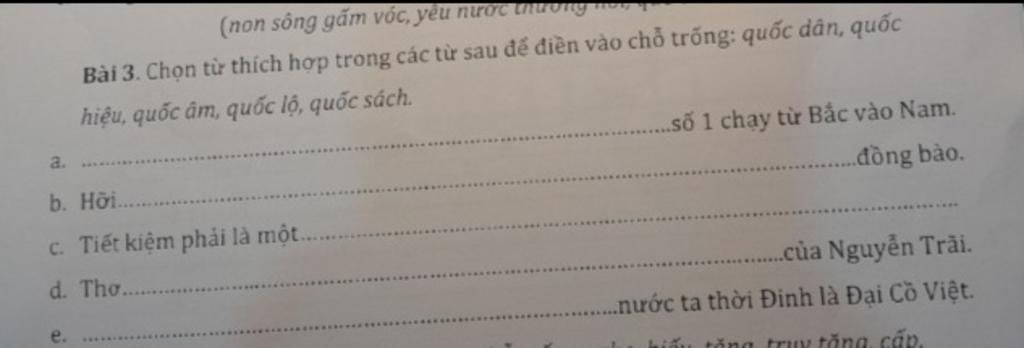 Bài 3. Chọn từ thích hợp trong các từ sau để điền vào chỗ trống: quốc dân, quốc