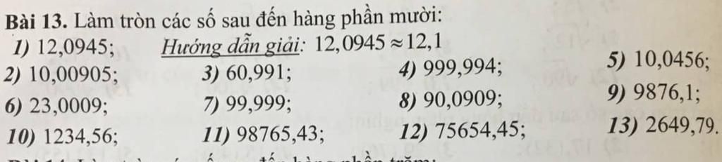 9) `9876,1` (không cần làm tròn vì nó tròn ở hàng phần mười sẵn)