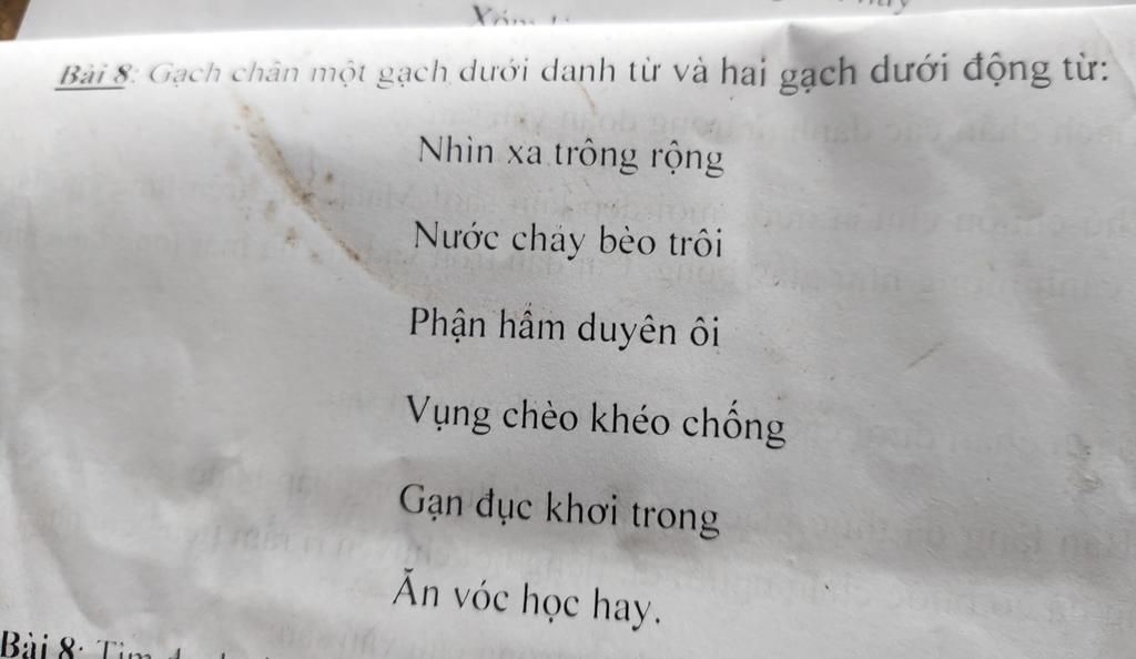 `-` Các động từ là: nhìn, trông, chảy, trôi, chèo, chống.