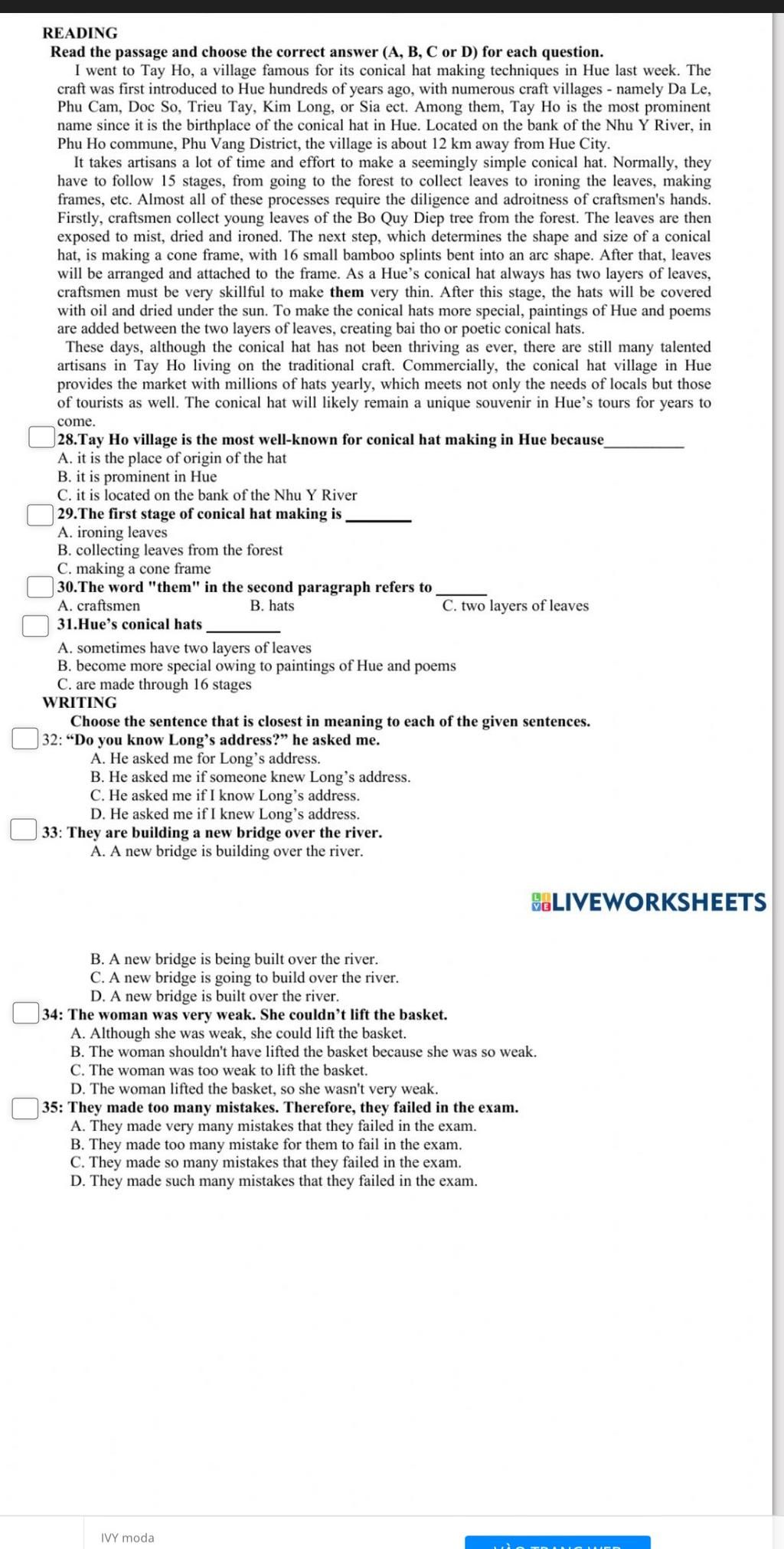 Read the passage and choose the correct answer (A, B, C or D) for each question.