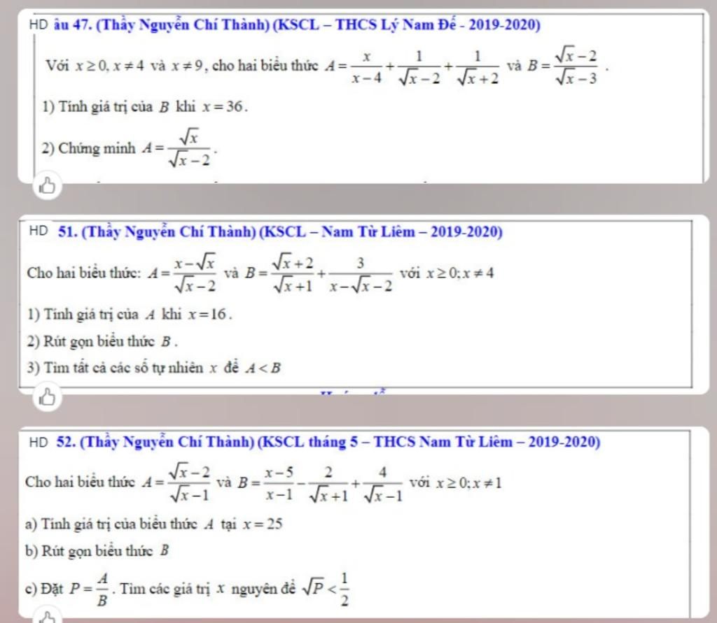 HD 51. (Thầy Nguyễn Chí Thành) (KSCL – Nam Từ Liêm – 2019-2020)