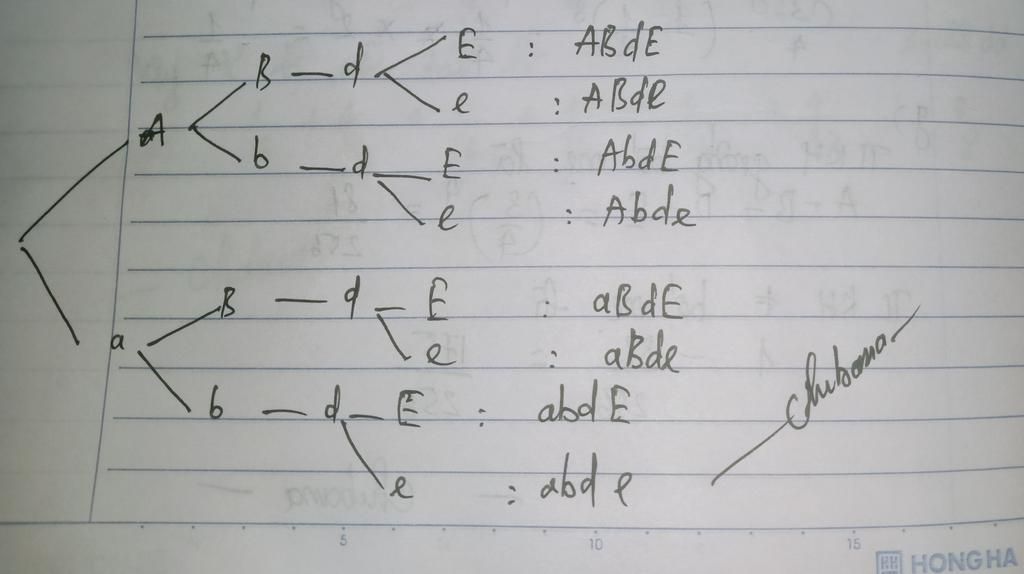 · Các trứng được tạo ra có thể có kiểu gen: $ABdE;$ $ABde;$ $AbdE;$ $Abde;$ $aBdE;$ $aBde;$ $abdE;$ $abde$