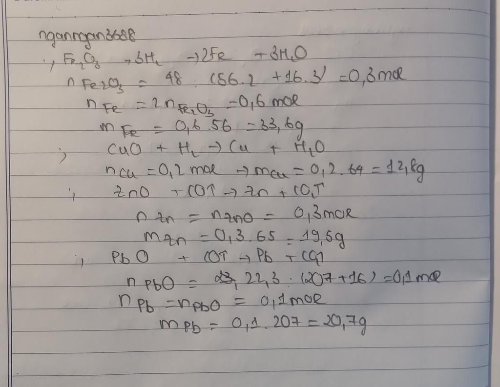 Theo PT: $n_{Pb}$ = $n_{PbO}$ = 0,1(mol)