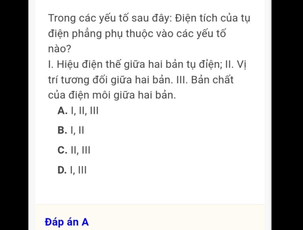 `→` Điện dụng của tụ điện phụ thuộc vào :