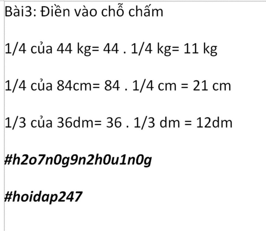 ` 1/3 ` của ` 36 d m = 12 d m `