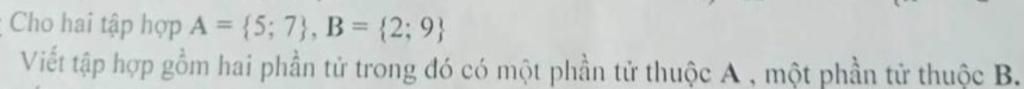 Ta có ` 4 ` tập hợp gồm một phần tử của tập hợp ` A ` và một phần tử của tập hợp ` B `