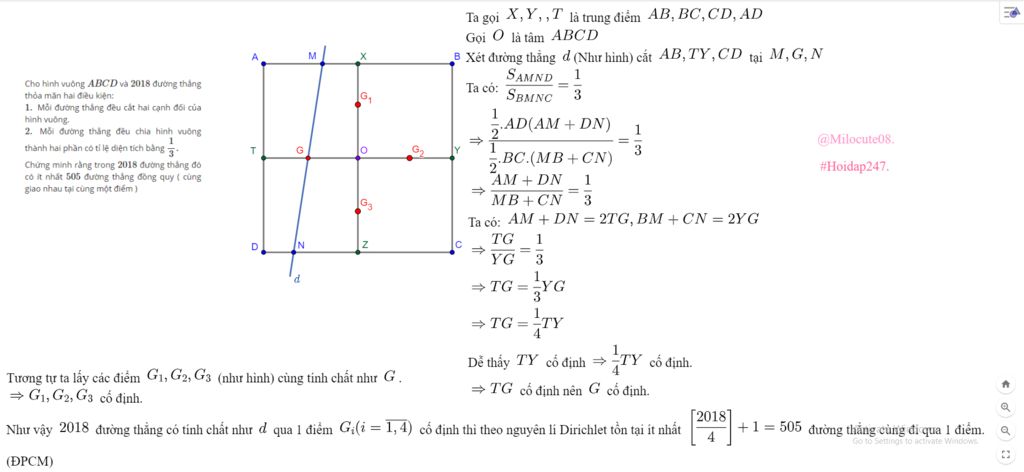 Chứng minh rằng trong `2018` đường thẳng đó có ít nhất `505` đường thẳng đồng quy ( cùng giao nhau tại cùng một điểm )