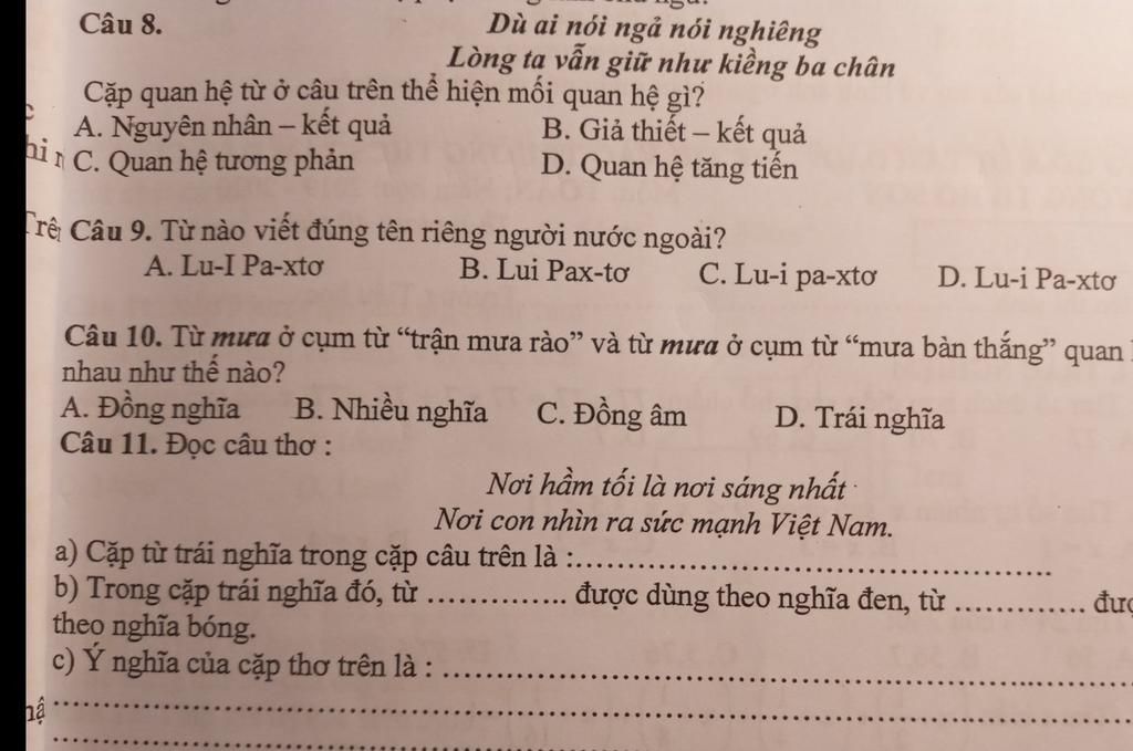 Câu 9 Từ viết đúng là D