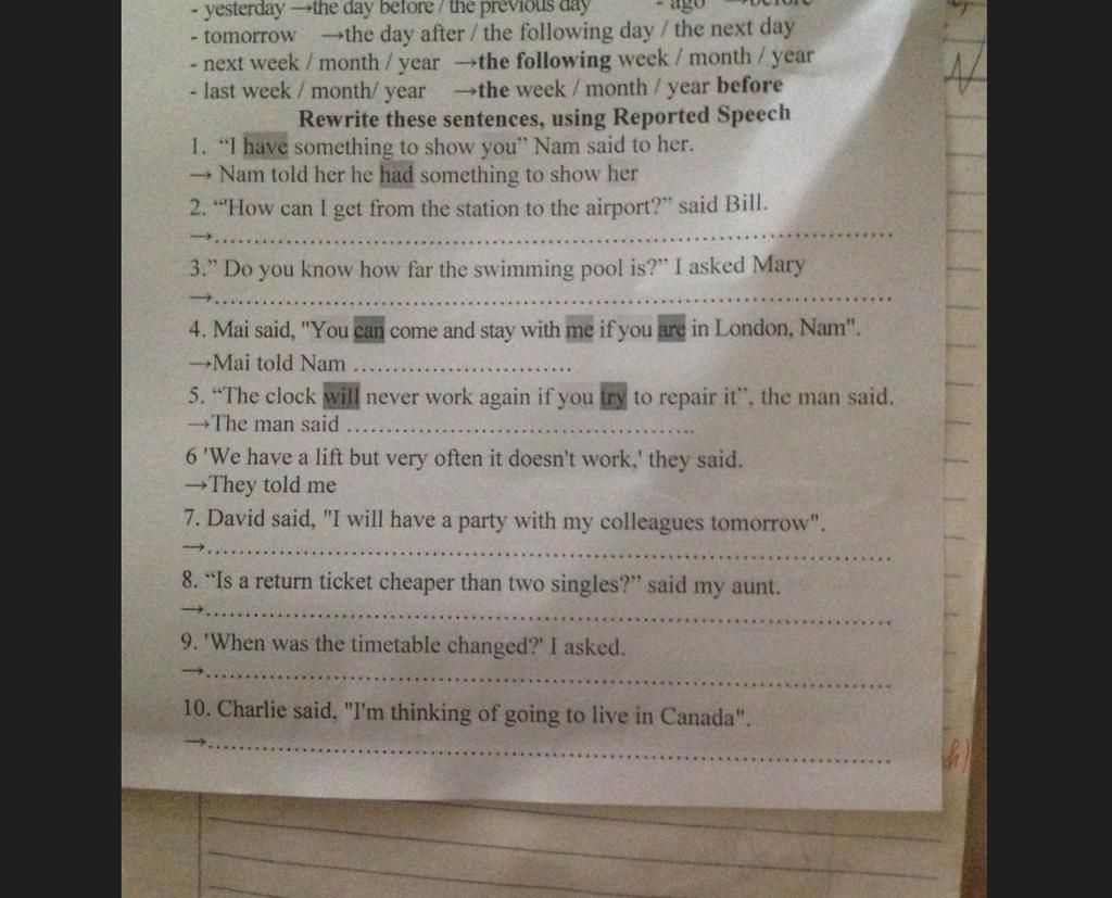 4. Mai told Nam that he could come and stay with her if he was in London.