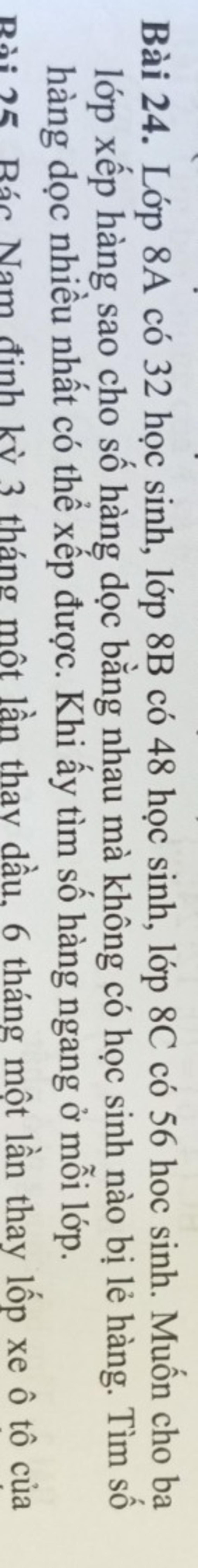 Nghĩa là số hàng ngang nhiều nhất của 3 lớp xếp được sẽ là ƯCLN của ( 32,48,56) mà ƯCLN của cả 3 số này là 8.