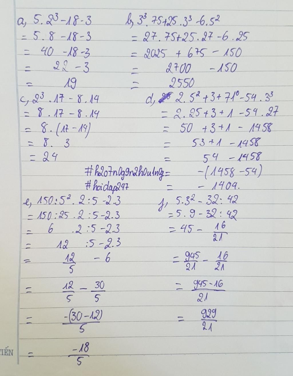 ` e) 150:5^2 . 2 : 5 - 2 . 3 `