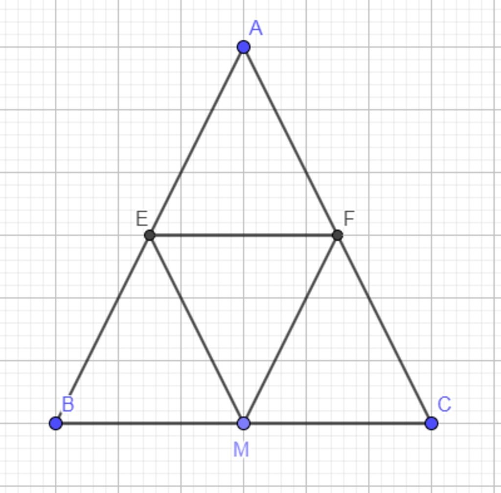 `=>`$EF~ \text{//} ~BC; EF = \dfrac{1}{2}BC$