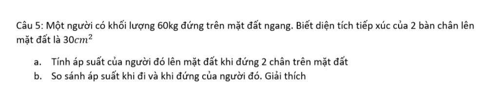 Nên áp suất khi đi bộ lớn hơn áp suất khi đứng