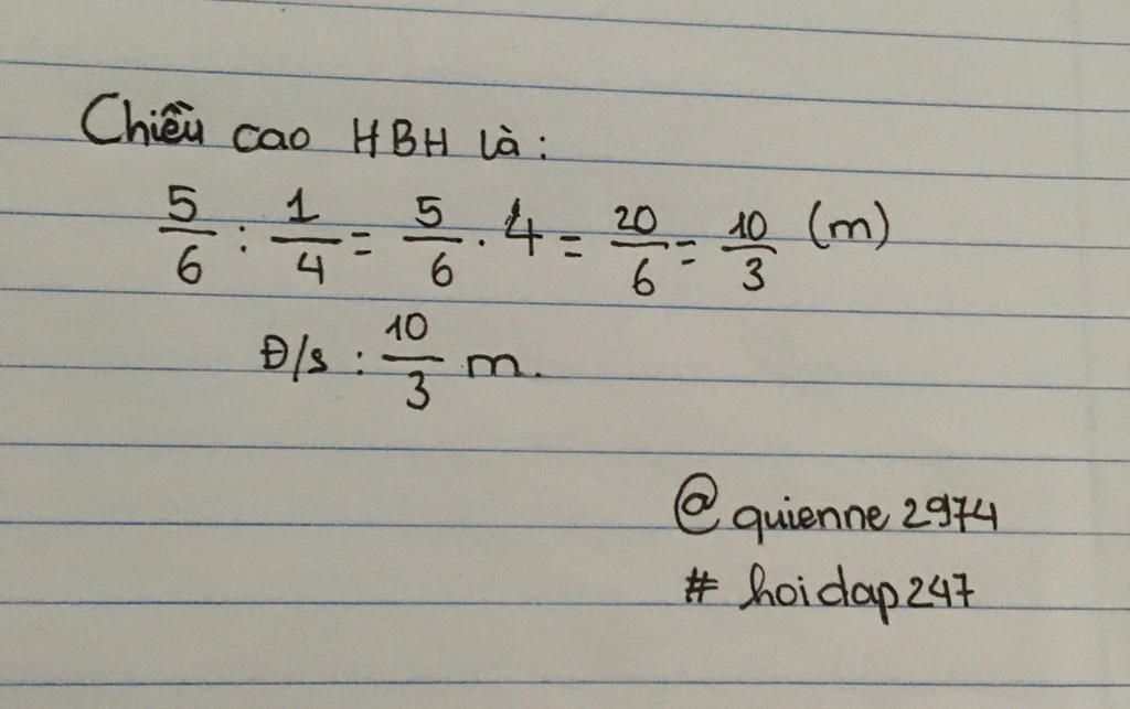 `h = S/a = 5/6 ÷ 1/4 = 10/3(m)`