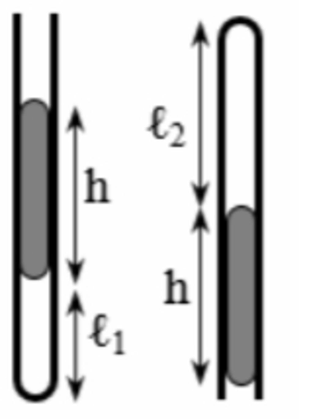 Với \(\left\{ \begin{array}{l}{p_1} = {p_0} + h = 76 + 15 = 91cmHg\\{V_1} = {l_1}s = 30s\end{array} \right.\) và \(\left\{ \begin{array}{l}{p_2} = {p_0} - h = 76 - 15 = 61cmHg\\{V_2} = {l_2}s\end{array} \right.\)