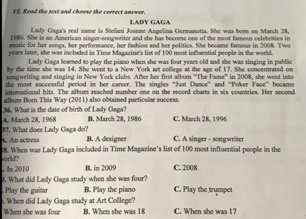 `39.` $\text{B. Play the piano}$