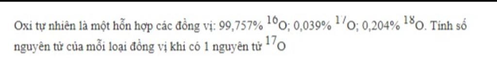 1 ng tử đv 16O chiếm 0,039% nghĩa là 1/nt O=0,039% $\to$ ntO=1/0,039%