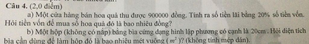 `b)` Vì không tính nắp nên hình lập phương sẽ còn lại `5` mặt