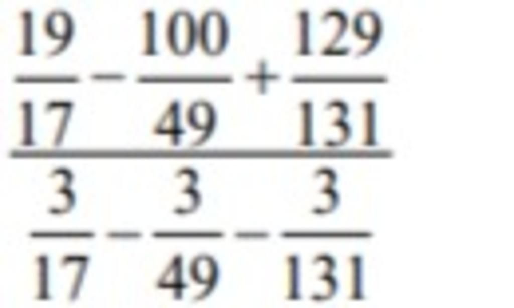 `=(1+2/17-2-2/49+1-2/131)/(3/17-3/49-3/131)`